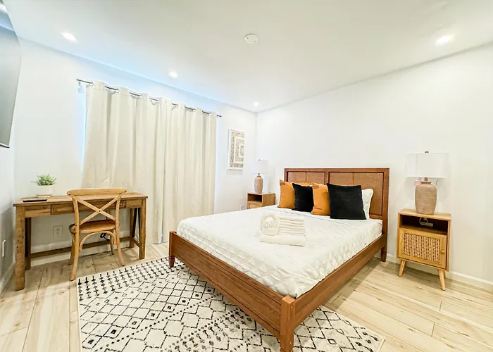 Cette propriété de Los Angeles est située dans le quartier "Beverly Hills" à Los Angeles à environ 2 km de la Fondation Annenberg et à environ 2,1 km de lieux commerçants tels que le centre commercial Beverly Center. Les attractions culturelles à proximité incluent le Musée Hammer, qui se trouve à 15 minutes en voiture. Située à une courte distance de l'église catholique du Bon Pasteur, Villa Boho-Chic 1Br-1Ba Oasis Near Hollywood -Brbev13 est populaire auprès des fidèles et des touristes.